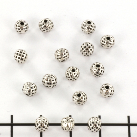 metalen kraal rond - met stipjes zilver