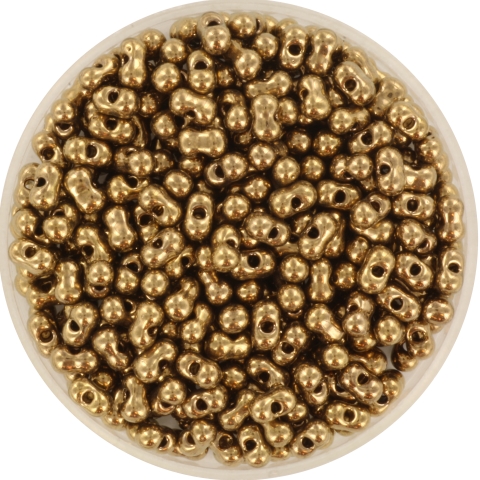 De vorm van de berry bead lijkt op de vorm van cijfer 8 of zoals de vorm van een pinda. Wanneer je ze achter elkaar rijgt, dan komen ze vanzelf om en om in elkaar te liggen. Zo kun je ze leuk afwisselen met rocailles in een ketting of brillenkoord.