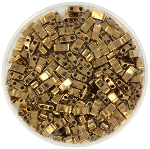 Half tila’s zijn platte rechthoekige kraaltjes met 2 rijggatjes parallel van elkaar. De maat is 2,5 x 5 mm en dat is precies de helft van de vierkante tila's. Ze zijn slechts 2 mm dik, dus heel plat en vooral geschikt om fijne armbanden mee te maken.