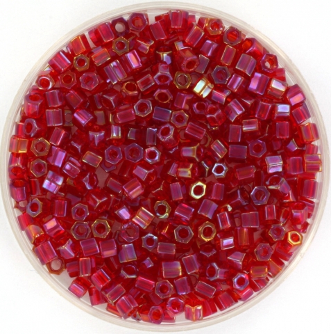 miyuki hex cut rocailles 8/0 - transparant luster red 167