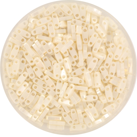 Quarter Tila’s zijn slanke rechthoekige kraaltjes met 2 rijggatjes parallel van elkaar. De maat is 1,25 x 5 mm en qua afmeting precies een kwart van de vierkante tila's.Ze zijn slechts 2 mm hoog, dus heel plat. De quarter tila’s zijn perfect af te wisselen met de hele en halve tila’s, die exact even breed zijn.
