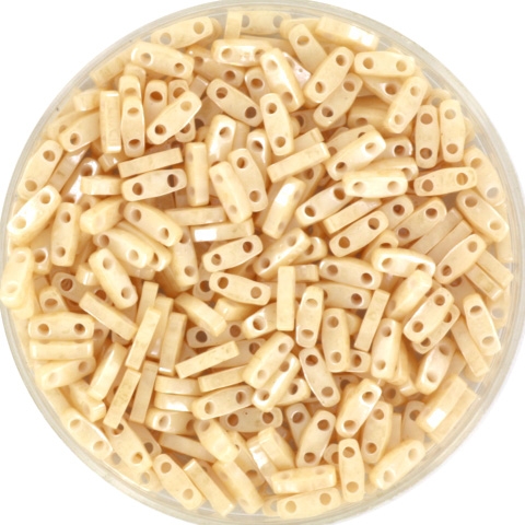 Quarter Tila’s zijn slanke rechthoekige kraaltjes met 2 rijggatjes parallel van elkaar. De maat is 1,25 x 5 mm en qua afmeting precies een kwart van de vierkante tila's.Ze zijn slechts 2 mm hoog, dus heel plat. De quarter tila’s zijn perfect af te wisselen met de hele en halve tila’s, die exact even breed zijn.