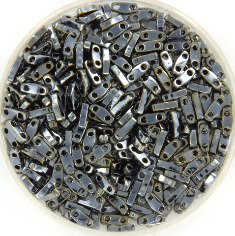 Quarter Tila’s zijn slanke rechthoekige kraaltjes met 2 rijggatjes parallel van elkaar. De maat is 1,25 x 5 mm en qua afmeting precies een kwart van de vierkante tila's.Ze zijn slechts 2 mm hoog, dus heel plat. De quarter tila’s zijn perfect af te wisselen met de hele en halve tila’s, die exact even breed zijn.