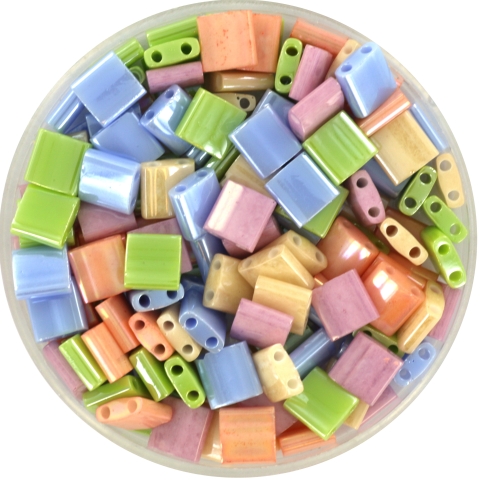 De mixen met tila's bestaan uit hele, halve en quarter tila's, die perfect samen gebruikt kunnen worden in een sieraad. De hele tila's zijn 5 x 5 mm, de halve tila's zijn 2,5 x 5 mm en de quarter tila's zijn 1,25 x 5 mm. Hiermee is de breedte van de verschillende tila's altijd exact 5 mm en sluiten ze dus heel mooi op elkaar aan.
