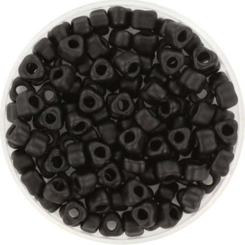 De triangles van Miyuki zijn kralen in de vorm van een driehoek met een rijggat in de lengte. De kralen die je hier ziet, zijn met 5/0 de grootste en zijn hiermee 4 mm groot.
