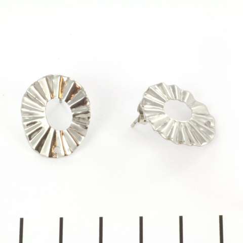 oorsteker golvend ovaal met gaatje - stainless steel zilver 22 mm