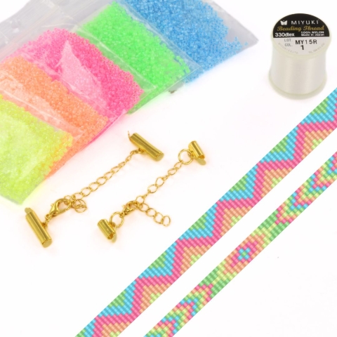 We hebben dit mooie setje om armbandjes te weven voor je samengesteld zodat je met 1 klik de kralen, juiste formaat slotjes én bijpassend draad gemakkelijk kunt bestellen. In deze blog vind je ook de 2 patronen die je met dit pakket kan maken.