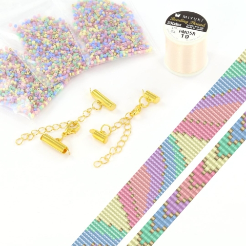 We hebben dit mooie setje om armbandjes te weven voor je samengesteld zodat je met 1 klik de kralen, juiste formaat slotjes én bijpassend draad gemakkelijk kunt bestellen. In deze blog vind je ook 2 patronen die je met dit pakket kan maken. Er zitten genoeg kralen en benodigdheden in om 2 armbandjes te maken en met het klosje draad kun je hierna nog vele malen vaker een leuke creatie van maken!