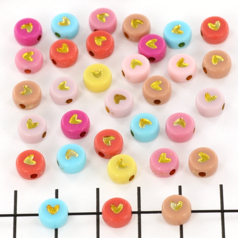 Plat rond met hartje gekleurde mix 7 mm