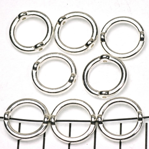 Een ring met rijggat wordt gebruikt als omhulsel voor een kraal. U rijgt dus het draad door één gat van de ring, dan rijgt u een kraal en dan rijgt u het draad door het andere gat van de ring. Indien u een kraal erin wilt rijgen die het niet helemaal opvult kunt u eventueel een paar rocailles of kleine metallook kralen erbij rijgen om het vol te maken. Ook kunt u kiezen voor een mooie kleur staaldraad zodat het niet erg is om een stukje van het draad te zien.