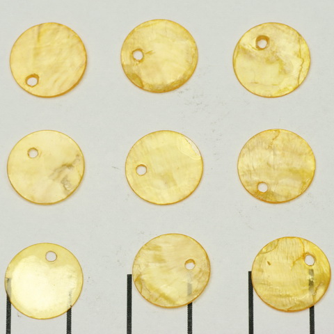 schelp rond plat 12 mm 1 gat - geel