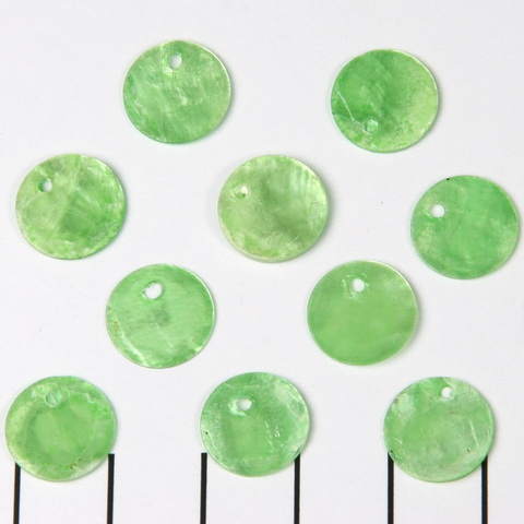 schelp rond plat 12 mm 1 gat - lichtgroen peridot