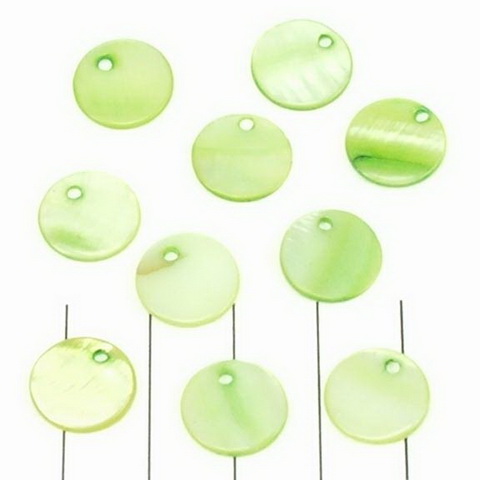 schelp rond plat 12 mm 1 gat - opaque lichtgroen