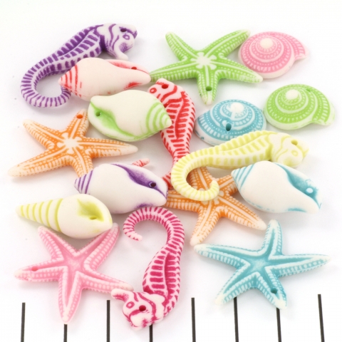 De mix bestaat uit 5 vormen. Er moet een ringetje aan het oogje bevestigd worden om het te kunnen rijgen.