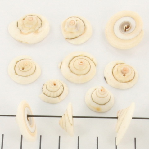 De maat varieert waardoor ook de aantal kralen per zakje varieert. Iedere schelp heeft 1 gat.