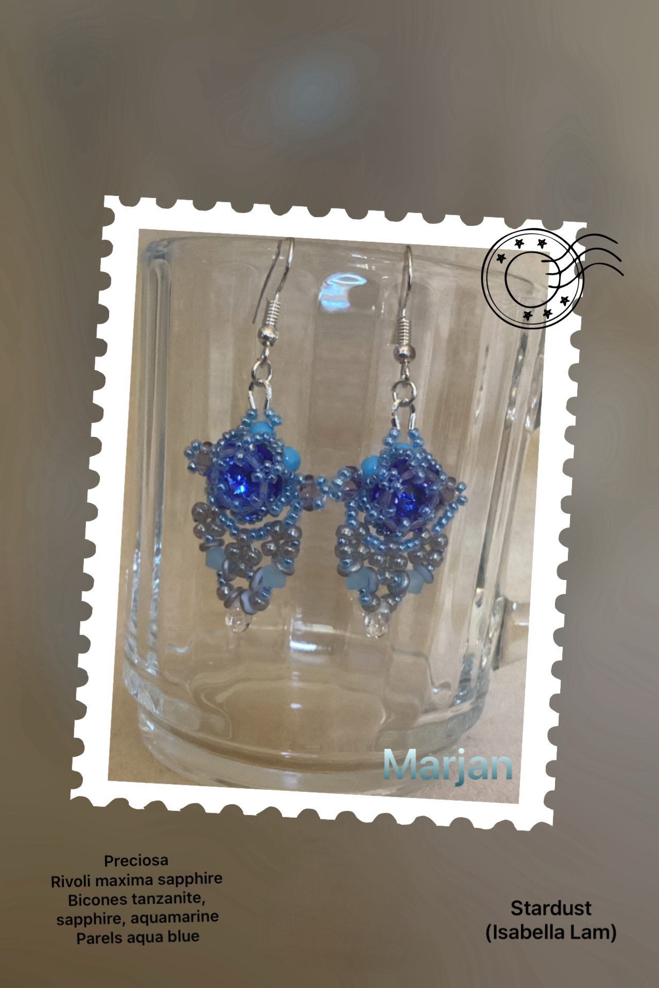 Preciosa bicone 3mm blue zircone ab verwerkt in de creole oorbellen en armbandje met preciosa bicone blue zircone, fushia en crystal honey |