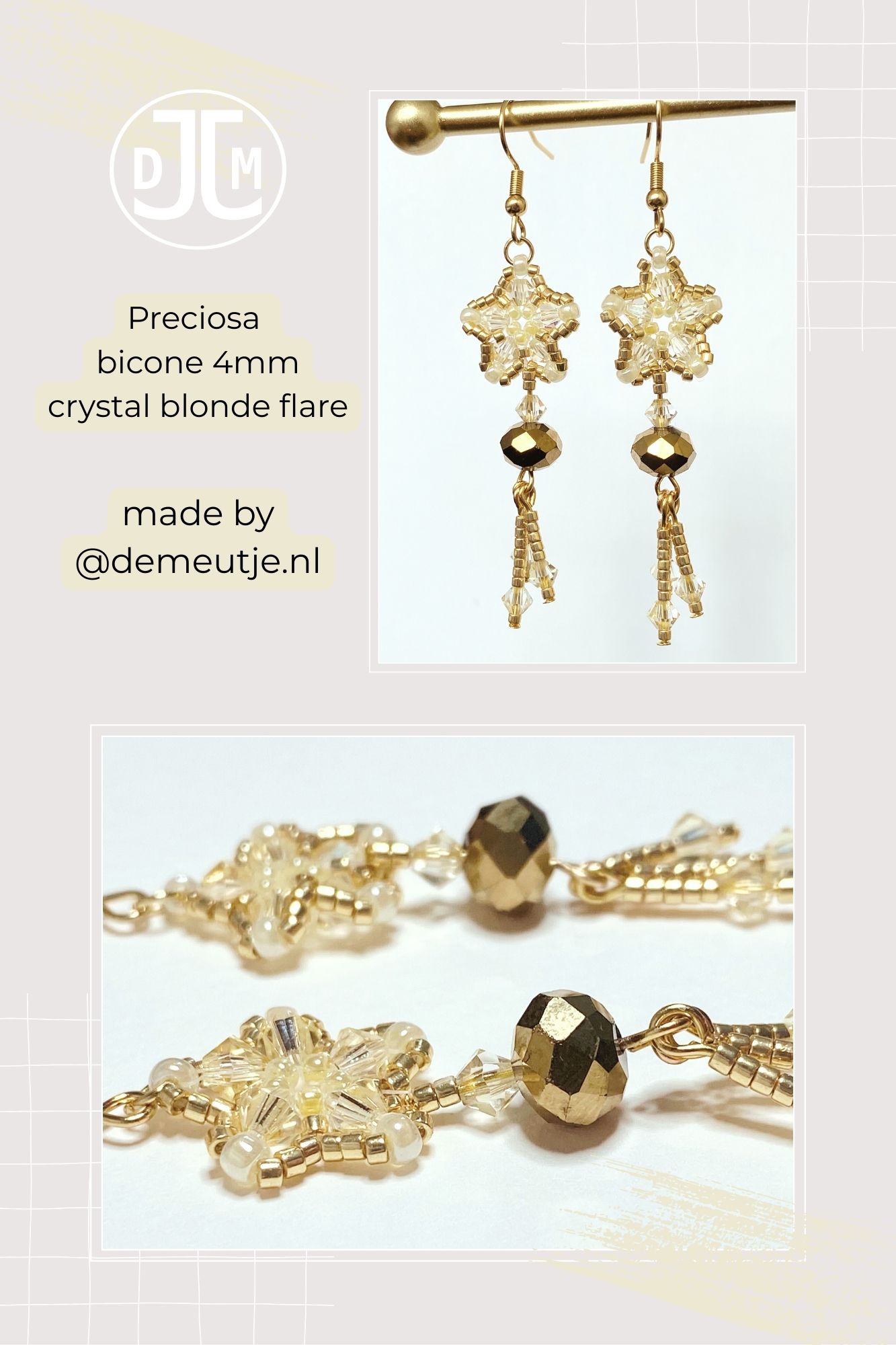 "Rising star" oorbellen gemaakt met preciosa bicone 4mm crystal blonde flare. Gemaakt door @demeutje.nl
