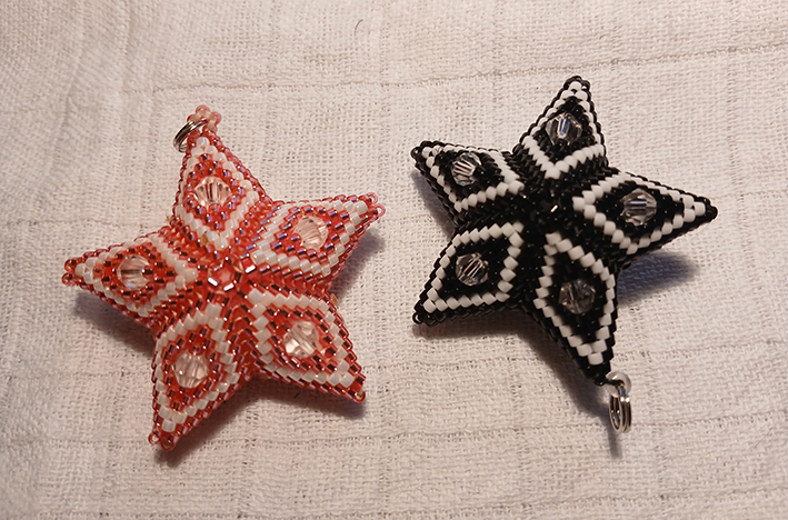 Vorig jaar heb ik voor kerst deze puffy ster gemaakt met de labrador preciosa en klein detail, maar de notenkraker heeft de ronde roze 6mm preciosa kraal in zijn staf |