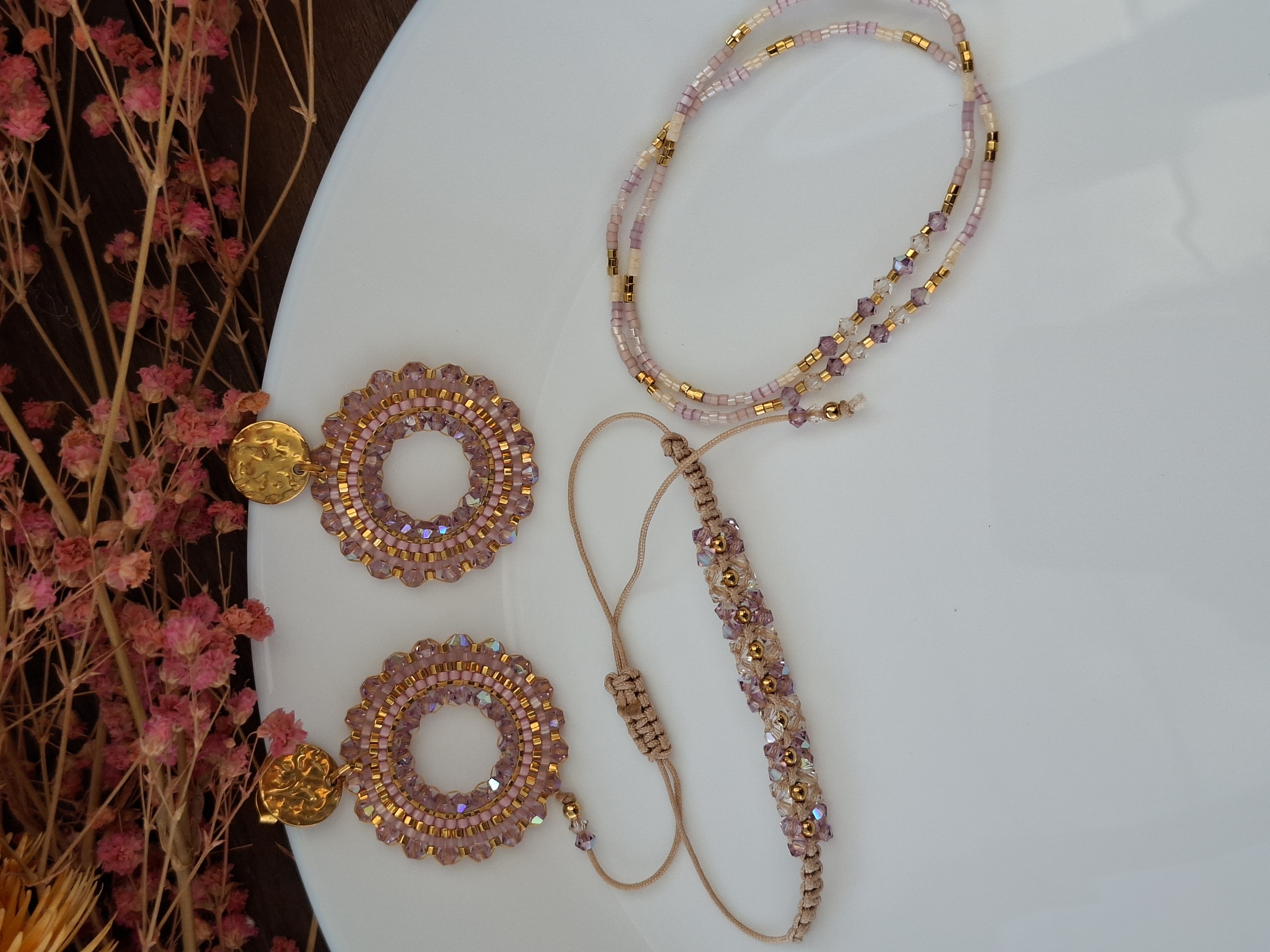 Creole en bijpassende armbandjes net preciosa bicone 3 mm light amethyst |
