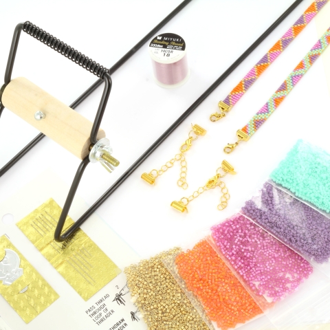 Dit complete starterspakket bevat alles wat je nodig hebt om direct te starten met weven en waarmee je zelf al 2 armbandjes kunt maken. De volgende artikelen zitten in het pakket:
