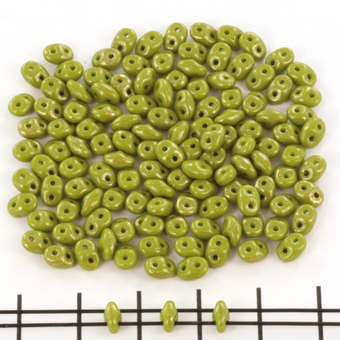 superduo 2.5 x 5 mm - gold marbled opaque olivine