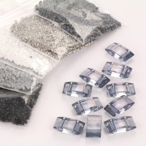 Met dit pakket kun je een complete tragerperlen-ketting maken. De 5 kleuren die je hieronder ziet, zitten in dit pakket, samen met 3 zakjes tragerperlen (30 stuks). klik hier om naar onze blog te gaan waar we uitgebreid uitleggen hoe je dit met de peyote stitch kunt rijgen.