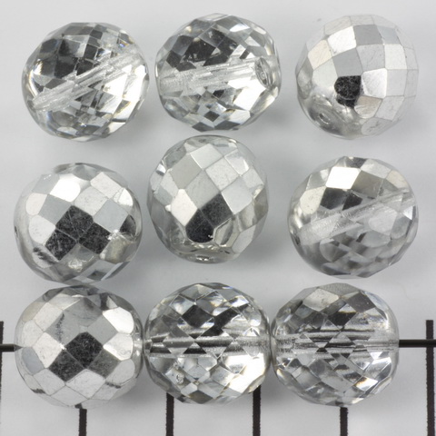 Tsjechisch facet rond 14 mm - transparant met zilveren glans