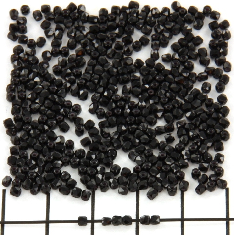 Tsjechisch facet rond 2 mm - jet zwart
