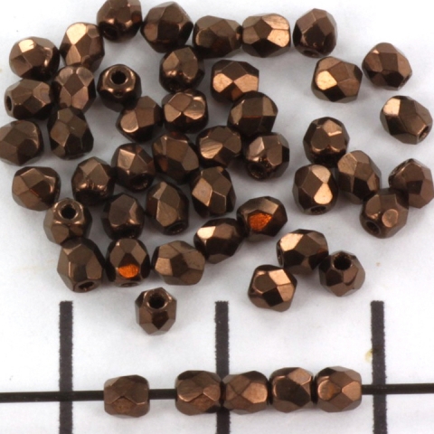 Tsjechisch facet rond 3 mm - donkerbruin met gouden glans