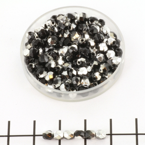 Tsjechisch facet rond 4 mm - half jet en zilver