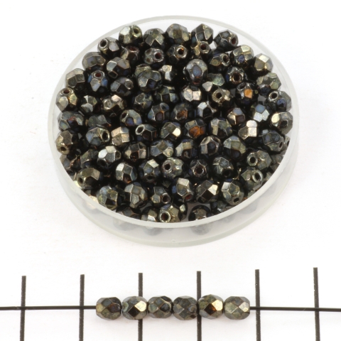Tsjechisch facet rond 4 mm - jet bronze picasso