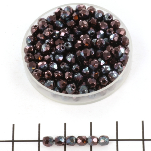 Tsjechisch facet rond 4 mm - luster metallic amethyst jet