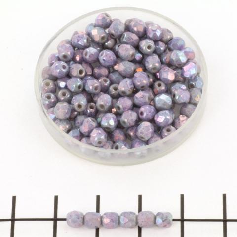 Tsjechisch facet rond 4 mm - metallic amethist chalk