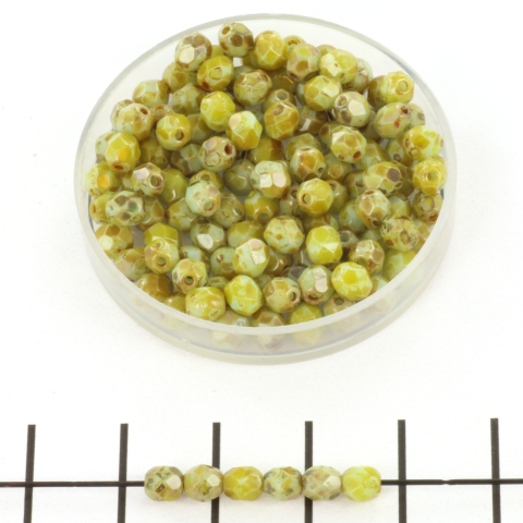 Tsjechisch facet rond 4 mm - pale turquoise picasso