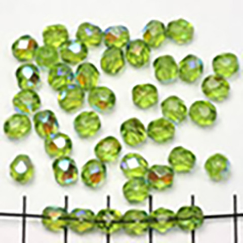 Tsjechisch facet rond 6 mm - groen olivine met ab glans
