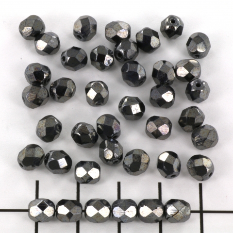 Tsjechisch facet rond 6 mm - hematiet