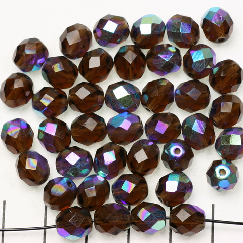 Tsjechisch facet rond 8 mm - bruin smoked topaz ab