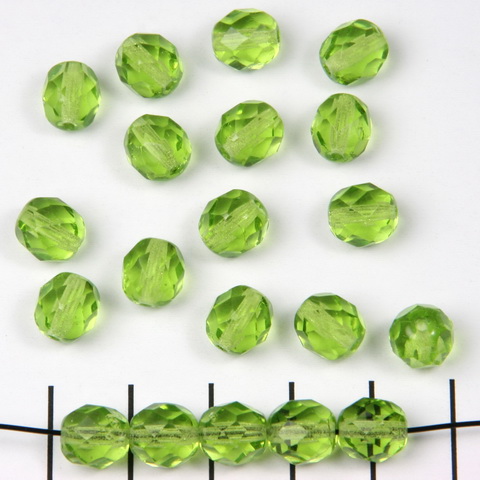 Tsjechisch facet rond 8 mm - licht groen olivine