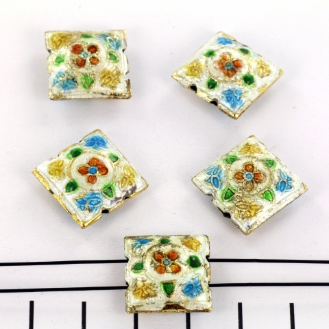 Cloisonné kralen werden in de middeleeuwen in China geintroduceerd. De kralen bestaan uit een metalen kern, met daaromheeen glas. De kralen zijn versierd met bloemen en blaadjes met daaromheen mooie, goudkleurige randjes. Ondanks de metalen kern zijn de kralen heel licht. Ze zijn namelijk hol van binnen.