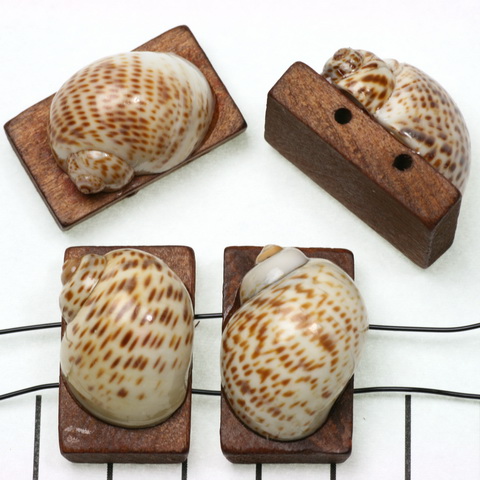 Het is een houten verdeler waar bovenop een schelp is geplakt. De vermeldde maten is de maat van het hout. De schelp zelf is ongeveer 11 mm hoog.