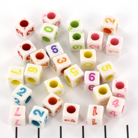 witte cijferkraal kubus - mix gekleurd