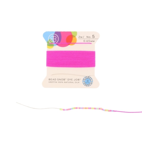 Griffin 100% natuurlijk zijden draad nr 5. Op het kaartje zit 2 meter zijden draad van 0.65 mm dikte met een handige naald aan de draad.