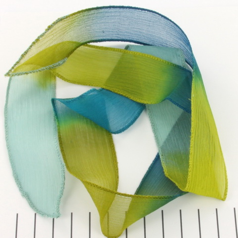 Deze zijden lint is mooi afgewerkt. Je kan het bijvoorbeeld als armband om je pols knopen of als ketting om je nek knopen.