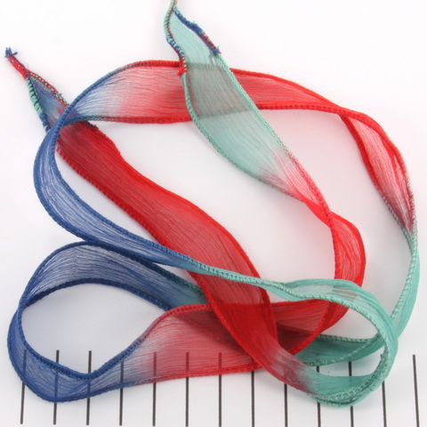 Deze zijden lint is mooi afgewerkt. Je kan het bijvoorbeeld als armband om je pols knopen of als ketting om je nek knopen.