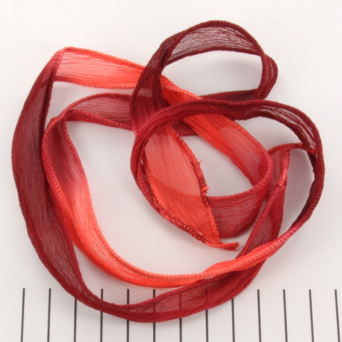 Deze zijden lint is mooi afgewerkt. Je kan het bijvoorbeeld als armband om je pols knopen of als ketting om je nek knopen.
