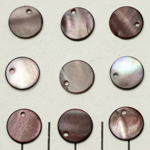 zoetwater schelp dik rond plat 12 mm 1 gat - paars bruin
